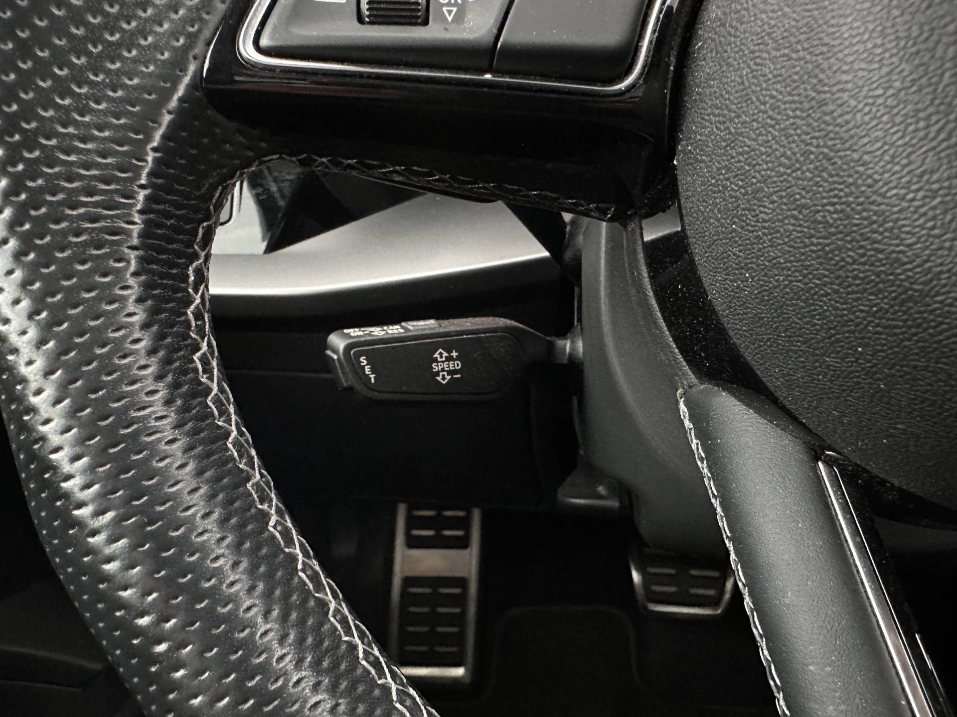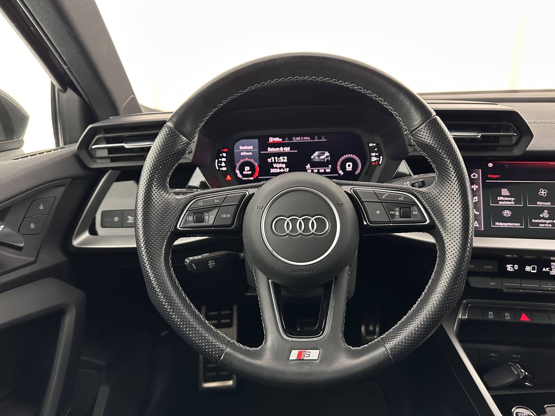• Sportstuurwiel, multifunctioneel in leder, driespaaks met schakelpaddels