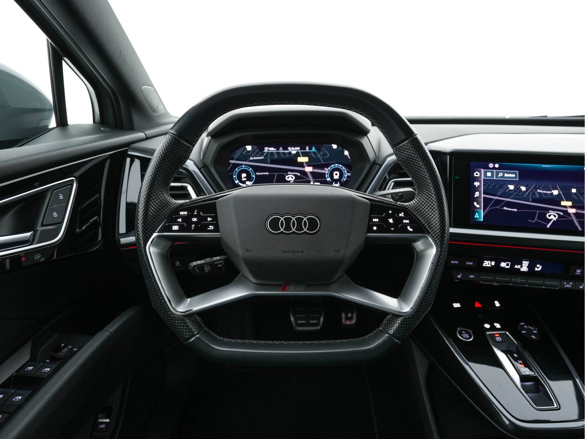 • Vierspaaks lederen sportstuur, afgevlakt aan de boven- en onderzijde, multifunctioneel, met stuurpaddels