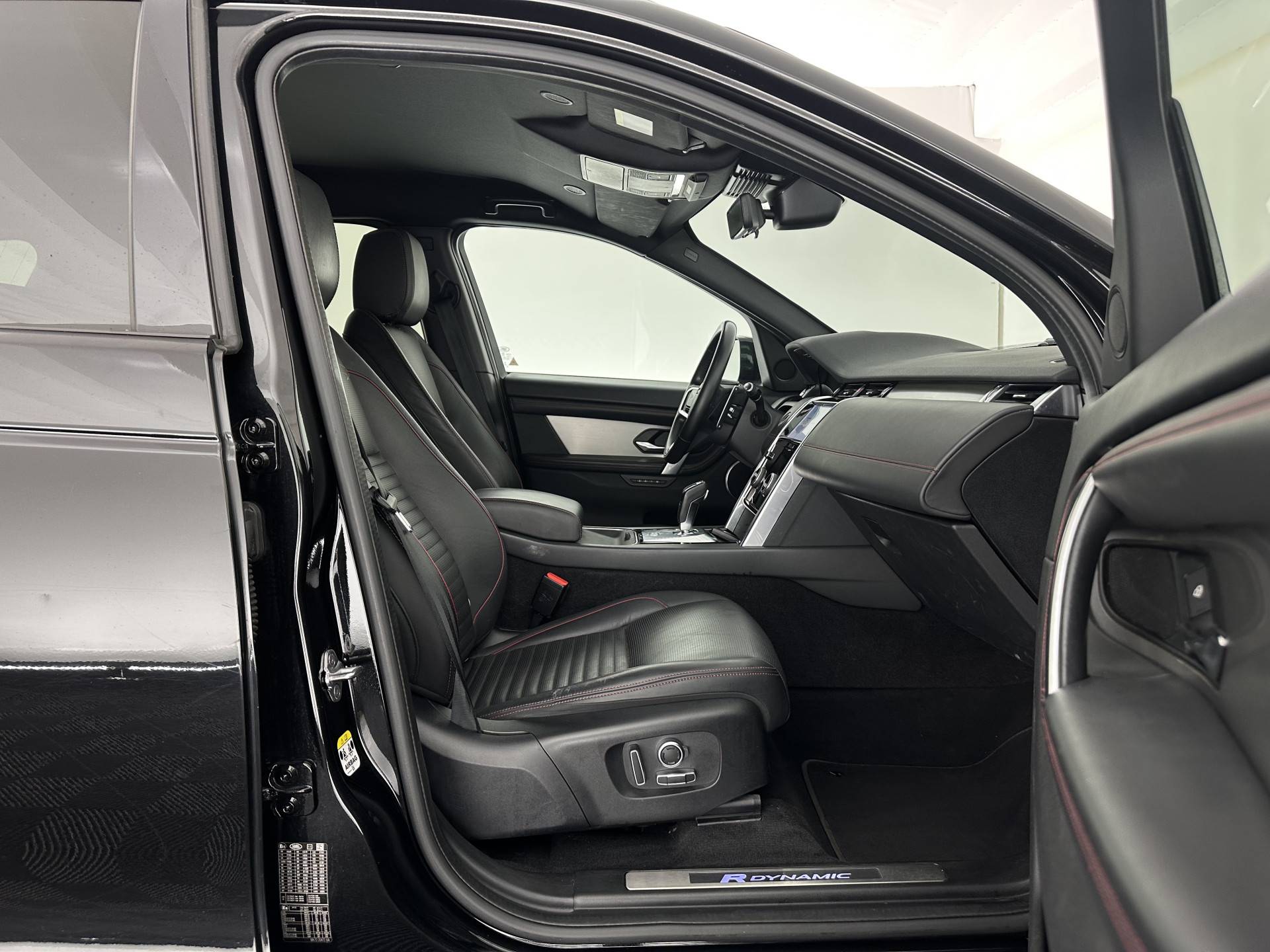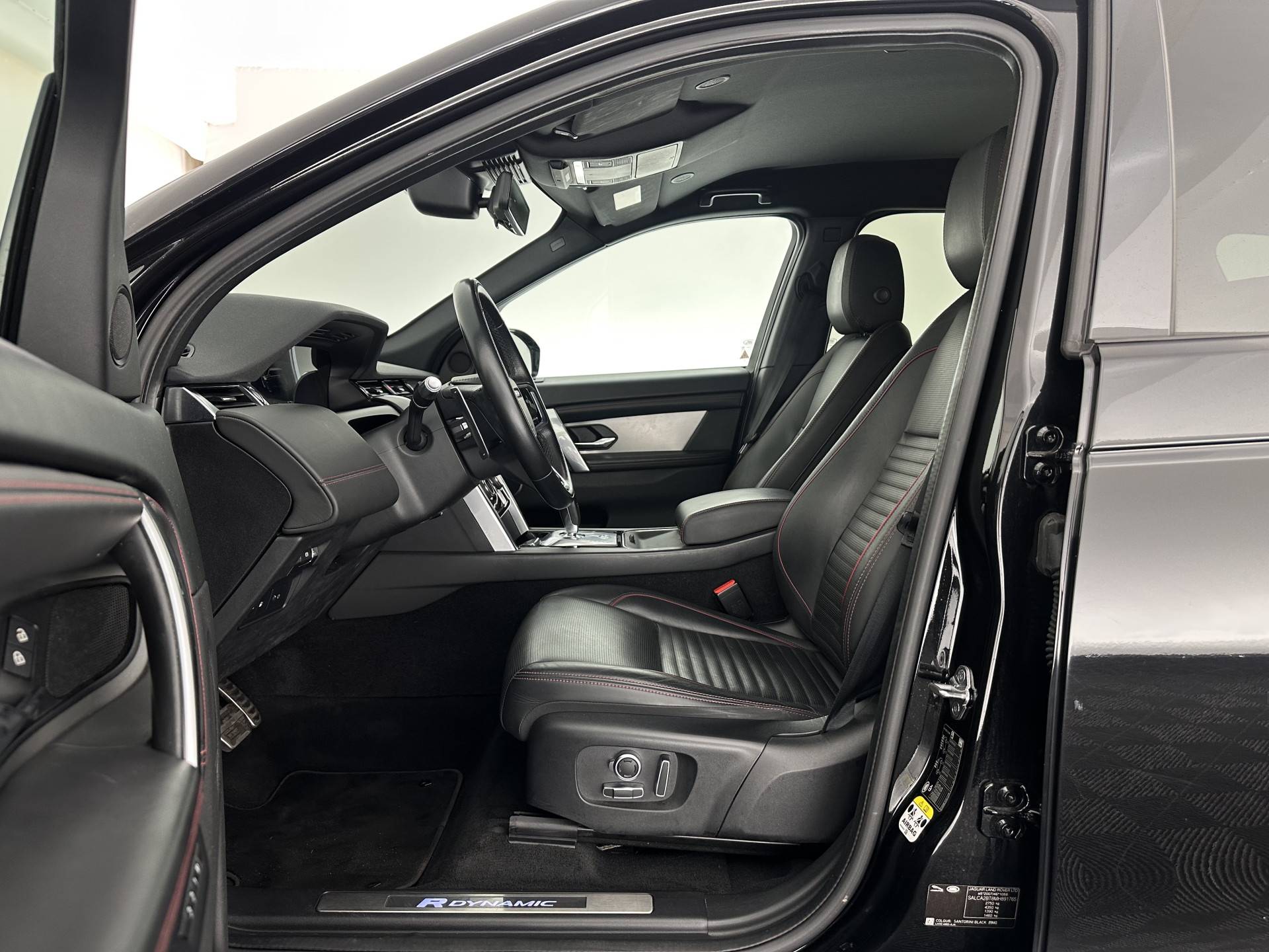 ⭐ Land Rover Discovery Sport P300e 1.5 R-Dynamic HSE Black Exterior Pack AWD (Plug-in) in Santorini Black Metallic met Ebony Perforated Windsor Lederen bekleding met Mars Red contraststiksel | Plug-in Hybride, Luxe & Avontuurlijk